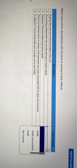Solved Check My Work Match Each Of The Descriptions With The Chegg Com